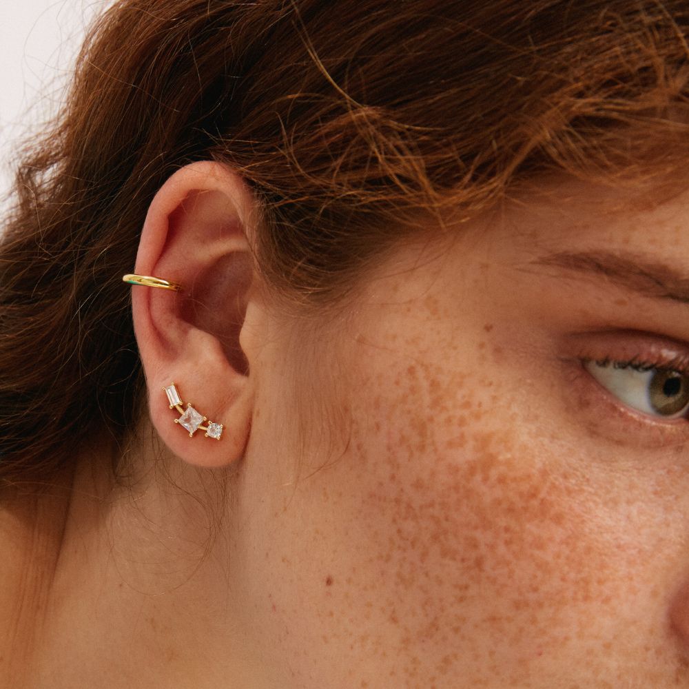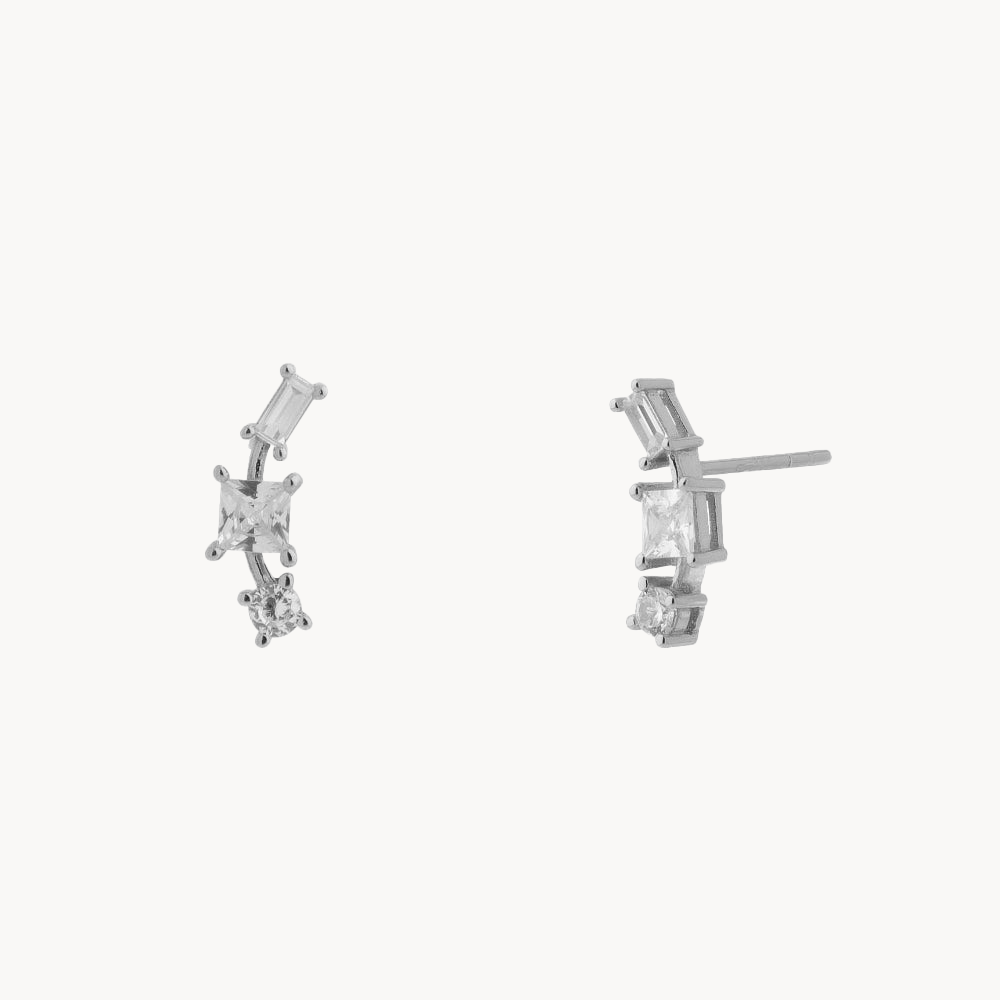 Thanks to their curved shape that will run along your lobe and the square cut of their zircons, the Agnes earrings will give strength and personality to your look.