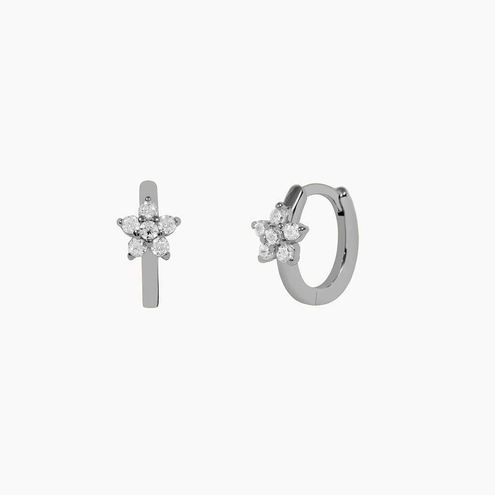 Alfa is a hoop earring with a zircon star integrated into the hoop itself.