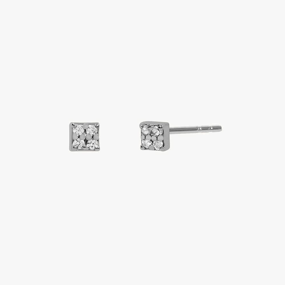 Beam Silver are mini earrings with four small square-shaped zircons.