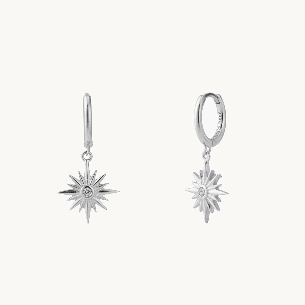 Capella are hoop earrings with an eight-pointed star charm and a white zirconia in the center that will bring light to your face.