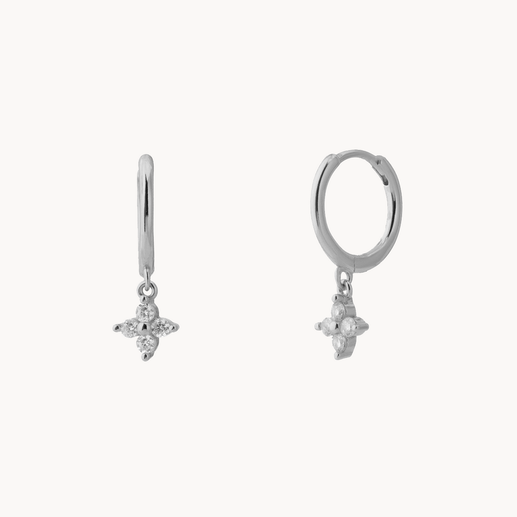 Our Clover Hoops, also available with white, black, mauve and silver-finished zircons.