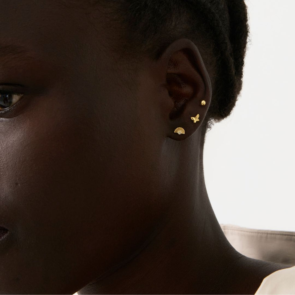 Cuzco are fan-shaped butterfly clasp earrings with a small white zirconia in the center. They are the ideal earrings for second and third holes due to their size and design.