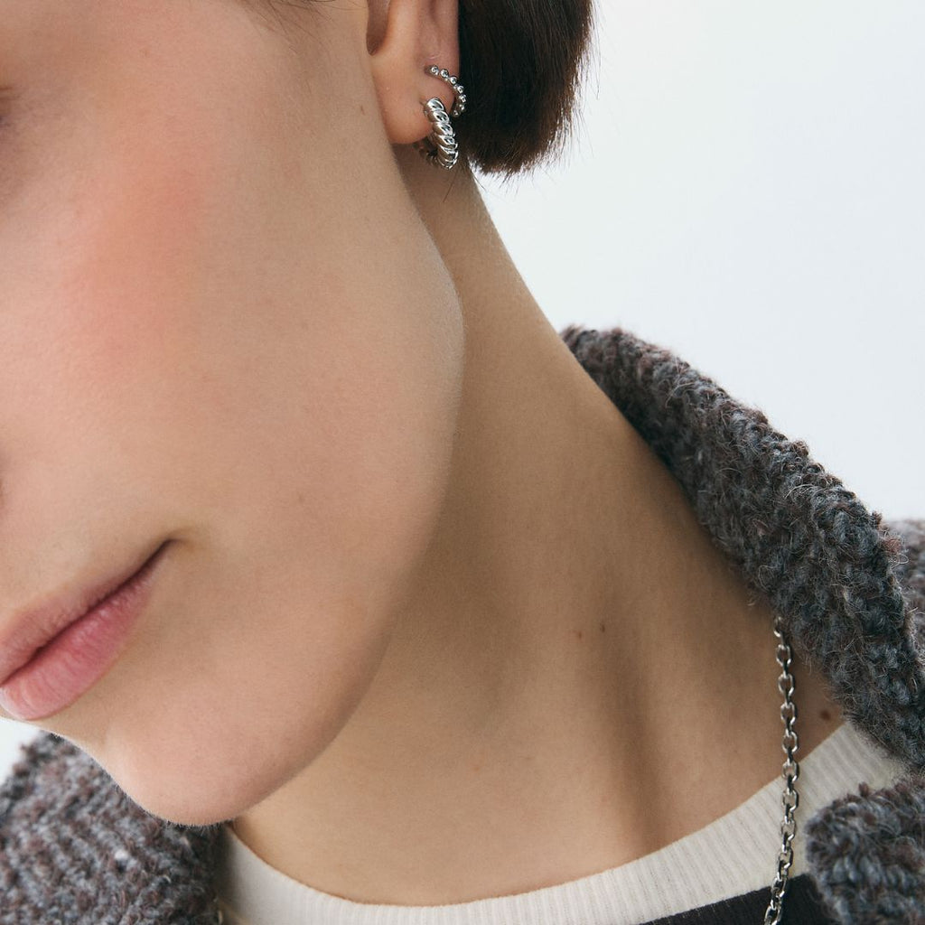 It is a small hoop that you can wear in all your looks combined with other "tiny" hoops or earrings to achieve a complete outfit.