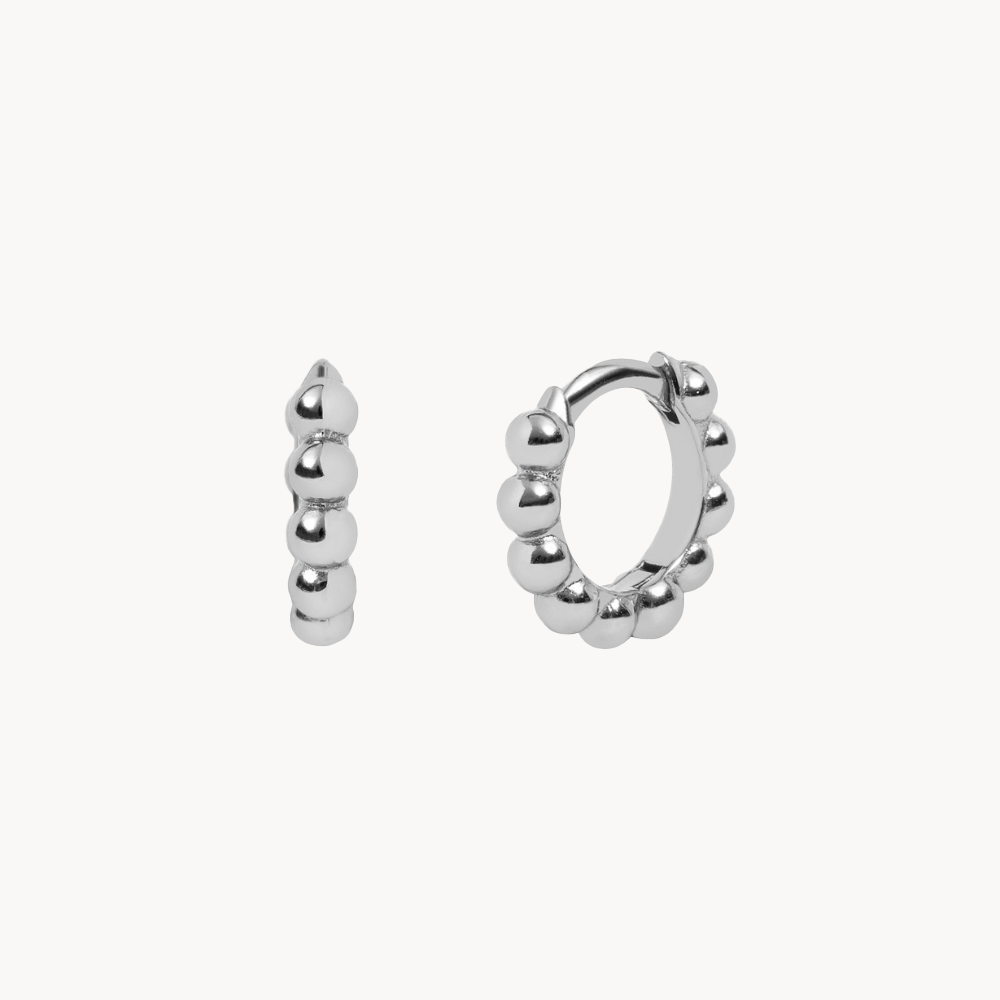 Sand is a 925 Sterling Silver earring plated in 18 carat gold with small balls around the entire hoop.
