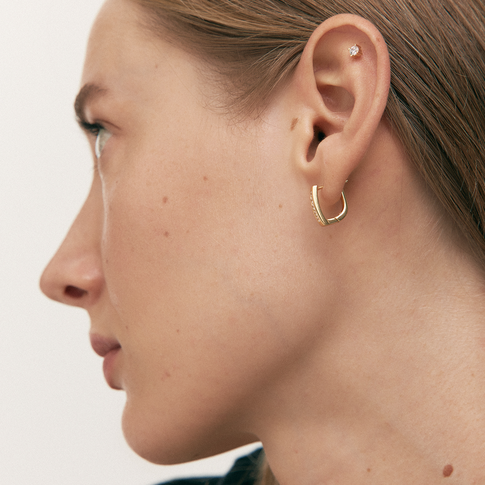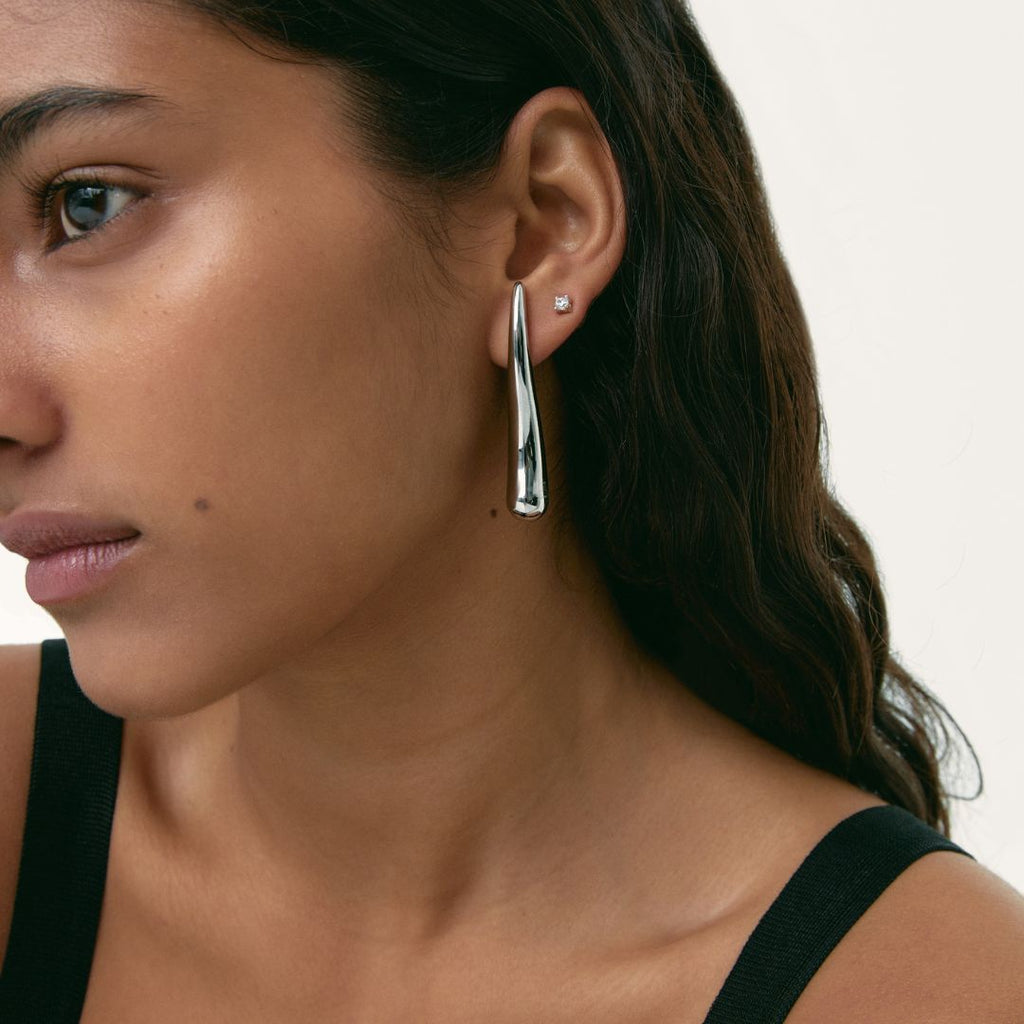 This is an ideal earring for the second and third holes, perfect to combine with long earrings, hoops or other studs. These solitaire earrings will be a staple for all your looks.