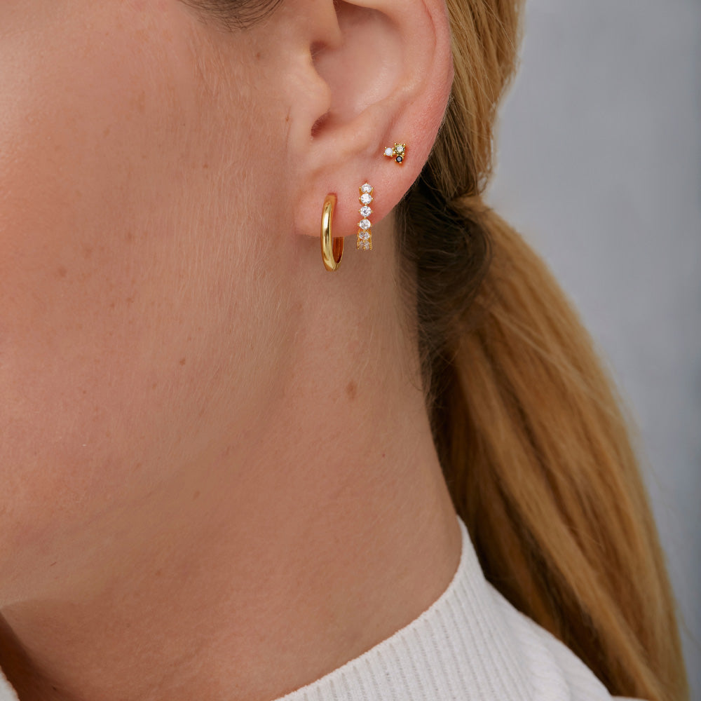 Our Serenity Silver earrings are the ideal piece of jewellery to wear in the second or third hole in combination with striking gold hoops.
