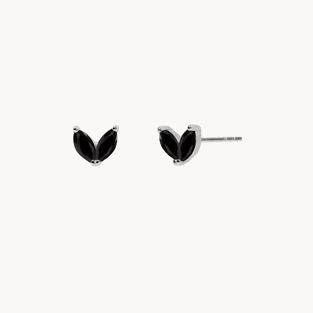 Black Phoenix is an earring with two black zircons in the shape of a two-leaf palm.