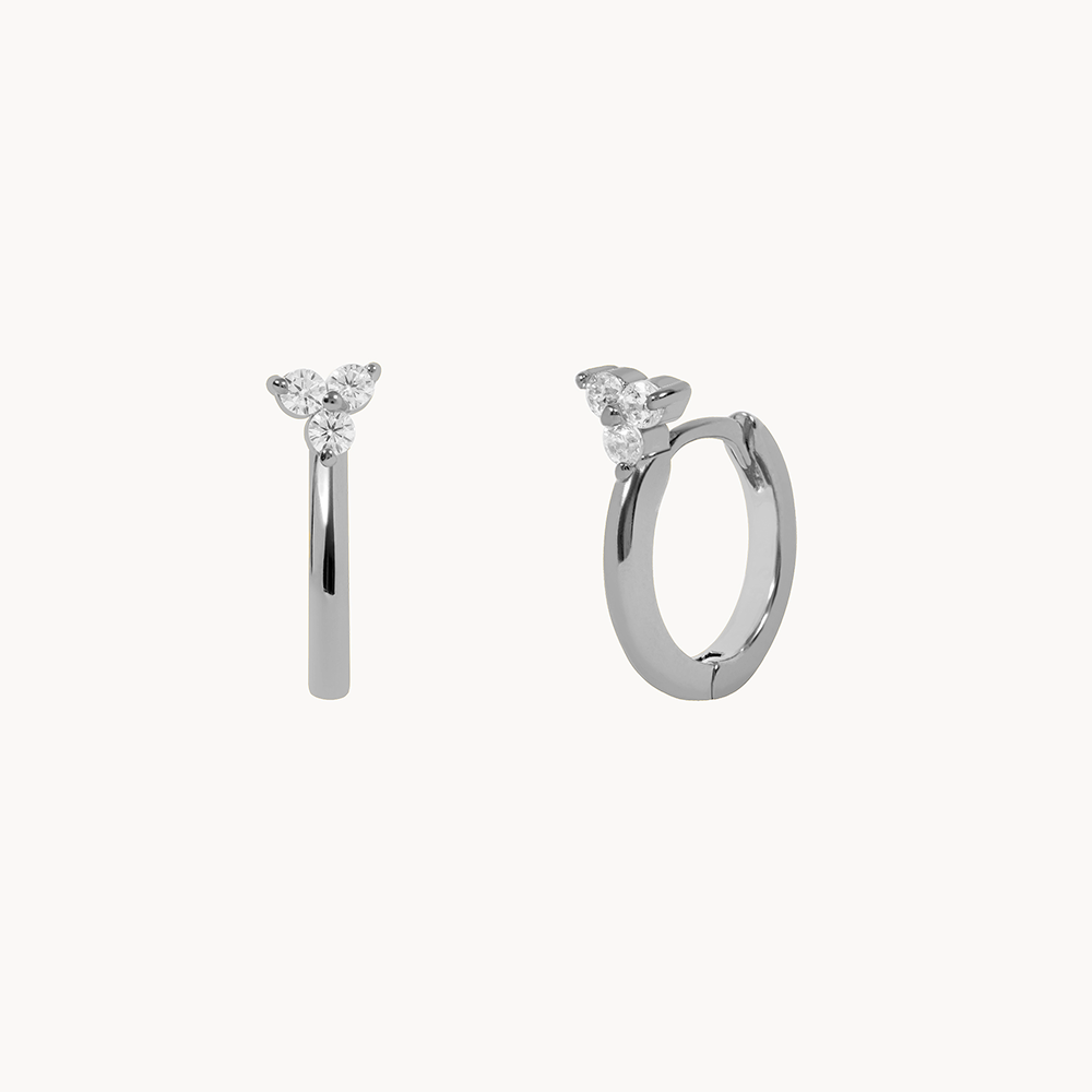 Pau are hoop earrings with a three-leaf clover made of shiny zircons. An ideal piece to wear both in your daily looks and in the most special ones. A must that does not go unnoticed.