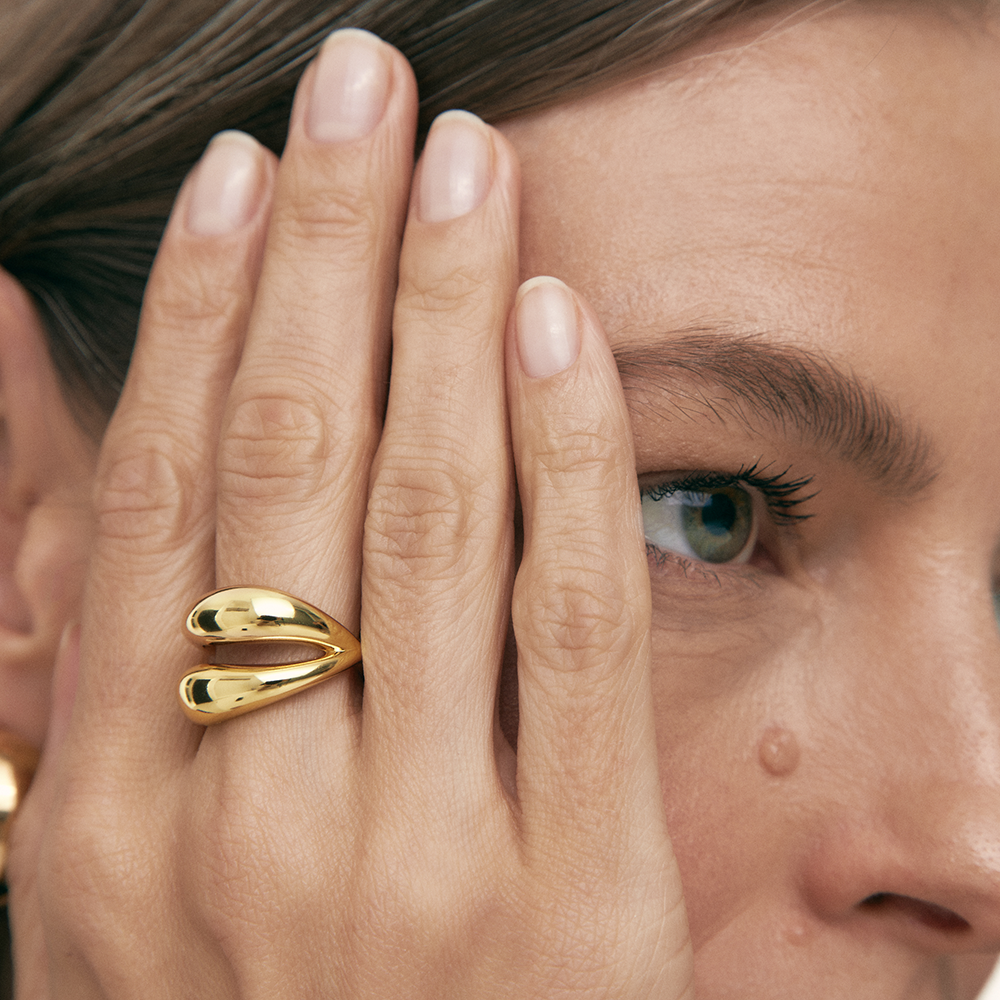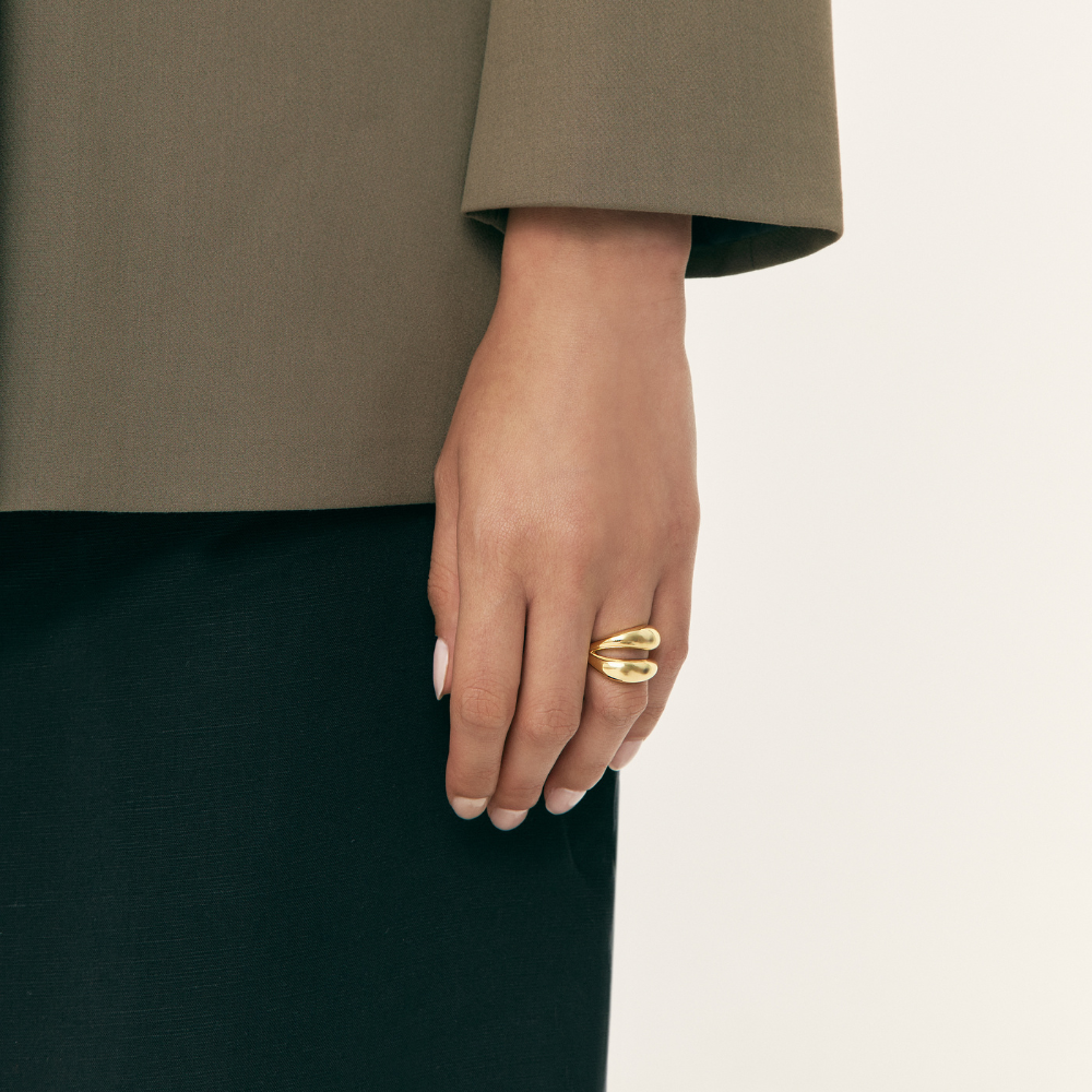Foster es un anillo XL doble, muy llamativo y vistoso, ideal para lucir en eventos especiales o con looks minimalistas, en los que destaquen tus accesorios.