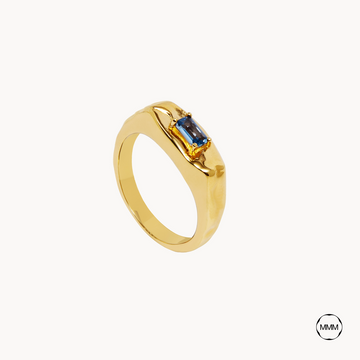 Una colección exclusiva de By Lia Jewels, diseñada en España, con piezas orgánicas en forma de piedra acentuadas con reflejos de circonita azul claro y naranja.