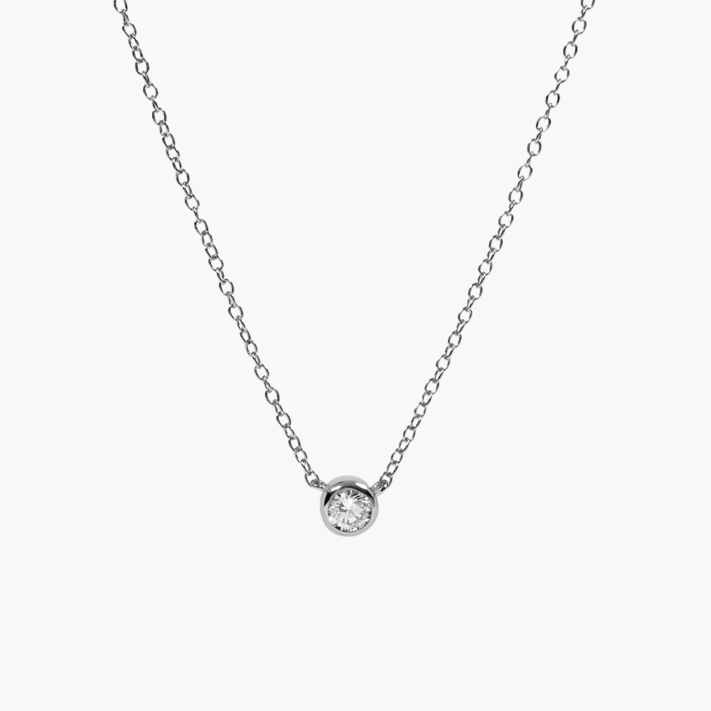 Solitary es un básico que nos encanta llevar solo o combinado con otros collares de nuestra colección. Esta elegante pieza lleva una circonita redondeada tallada.