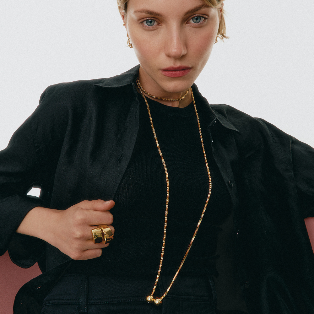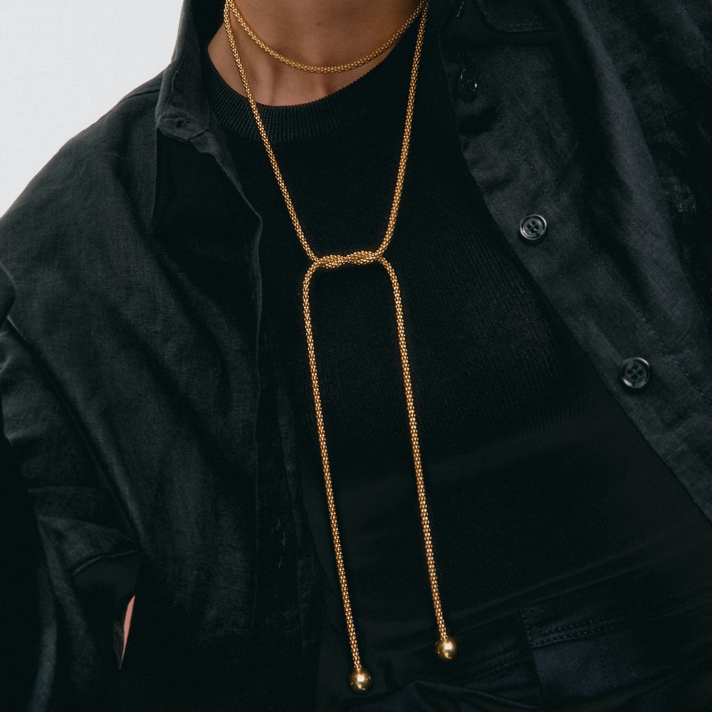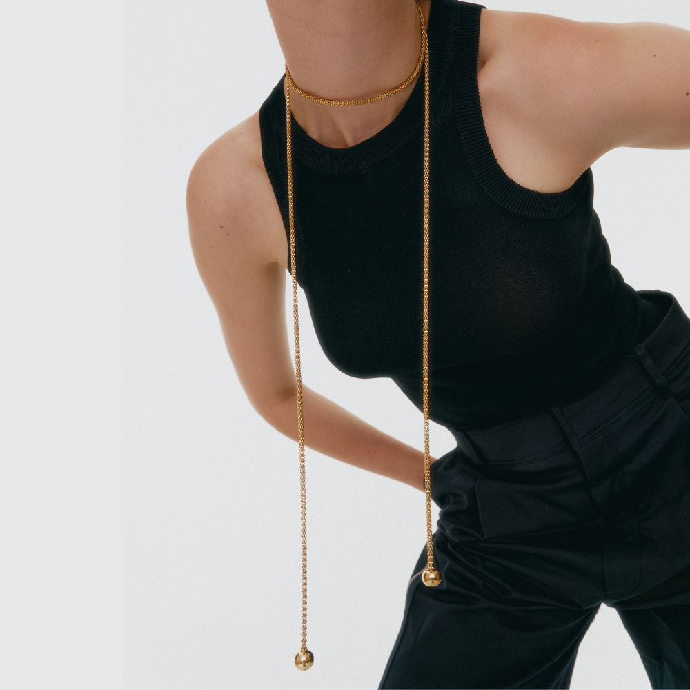 El Collar Versatile es una pieza muy especial creada para las más atrevidas. Una tendencia elegante y sofisticada. Con el detalle de dos piezas en forma de bola en los extremos, la cadena será la protagonista del look.
