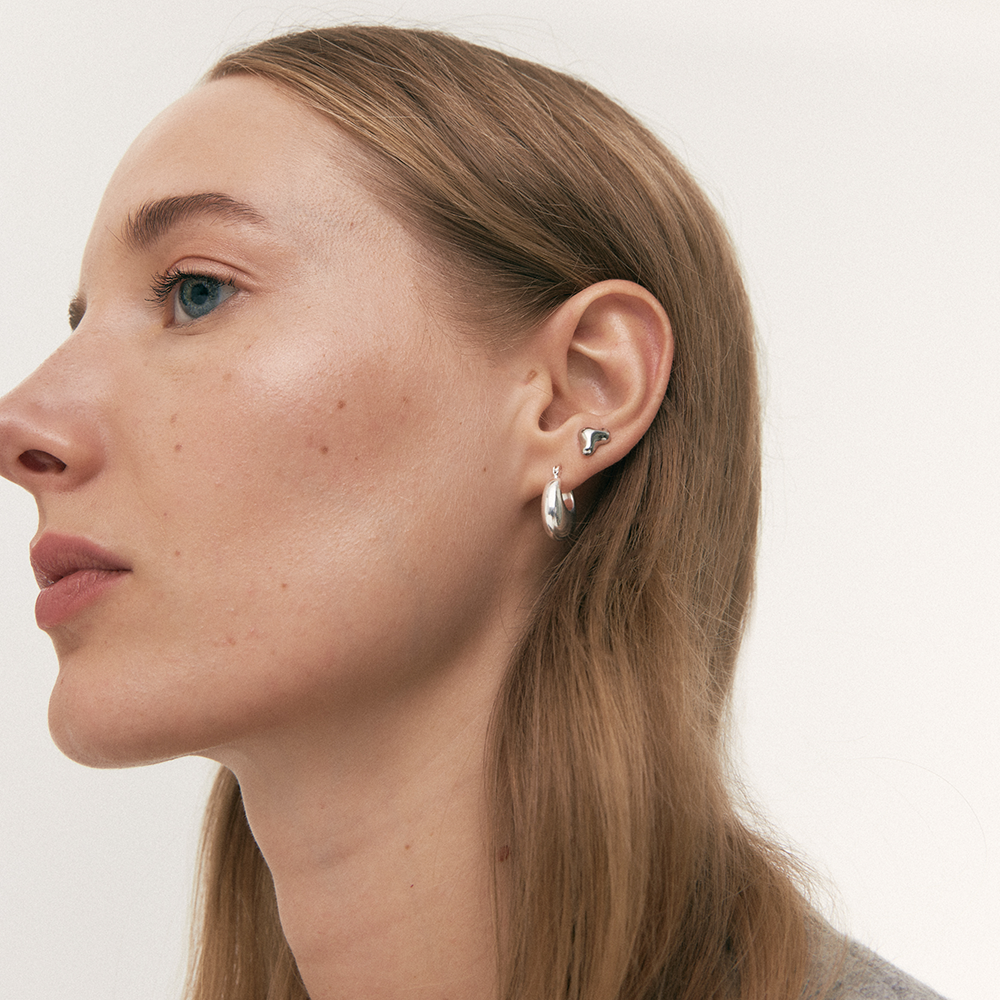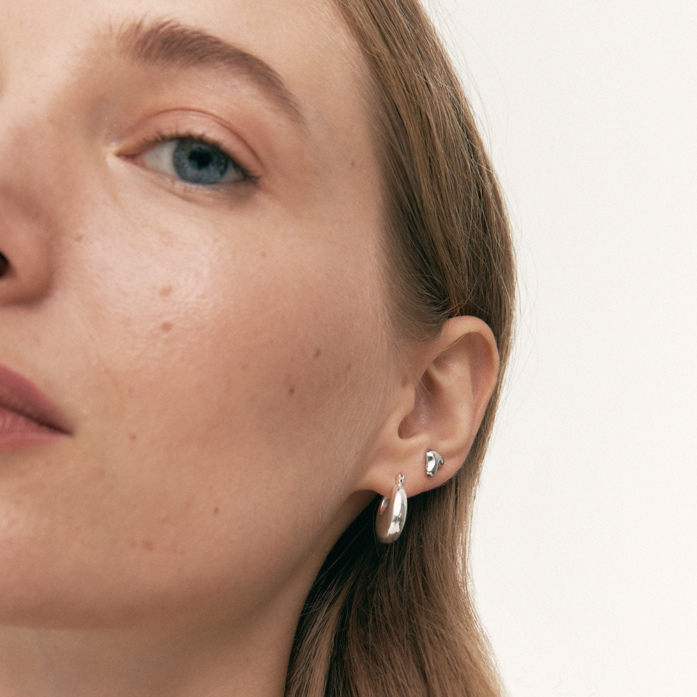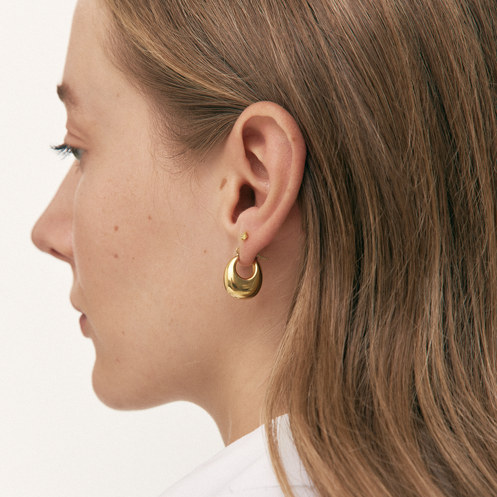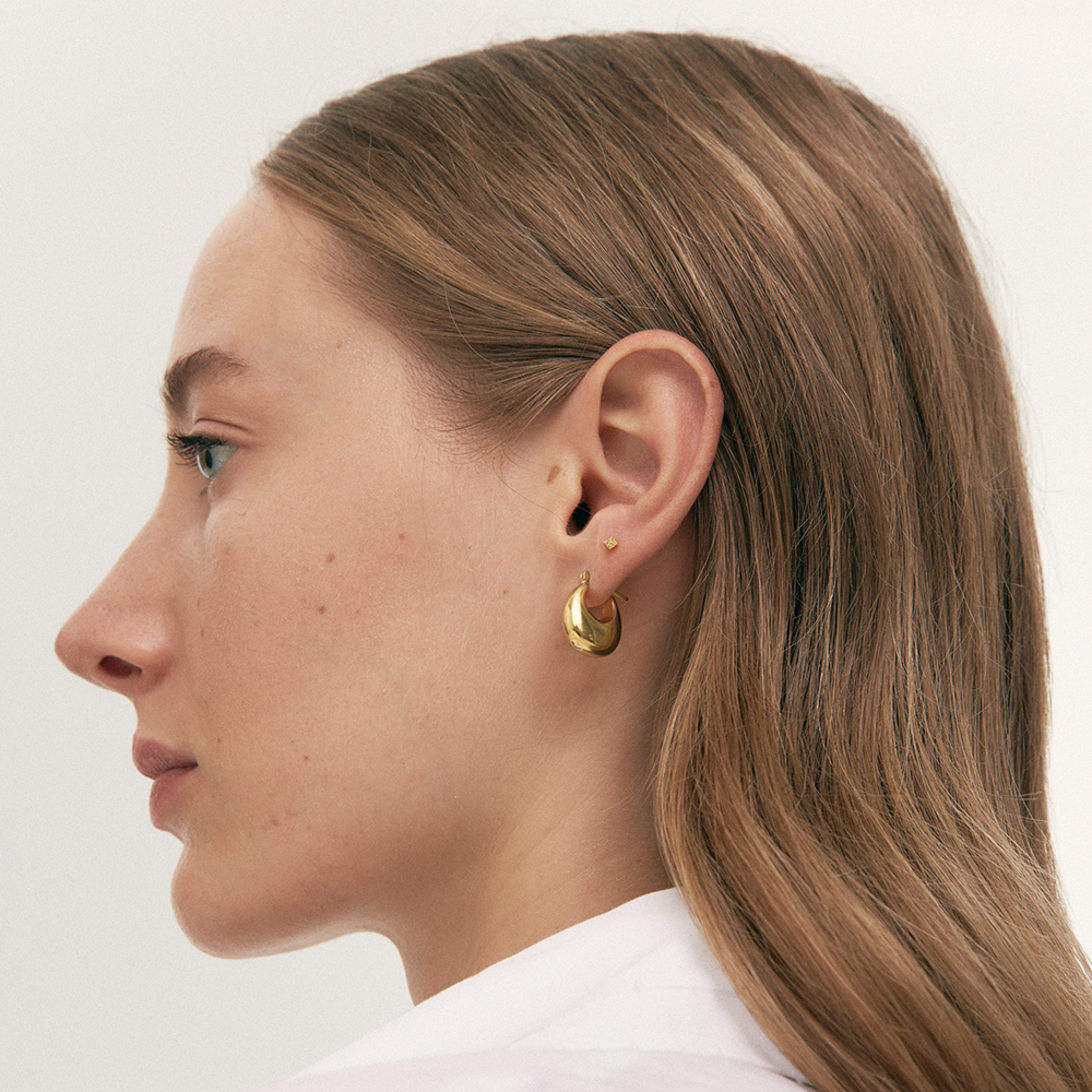 ¿Fan del brillo? Combínalos con studs con circonitas como los pendientes Krunu o los Moon Pearl.