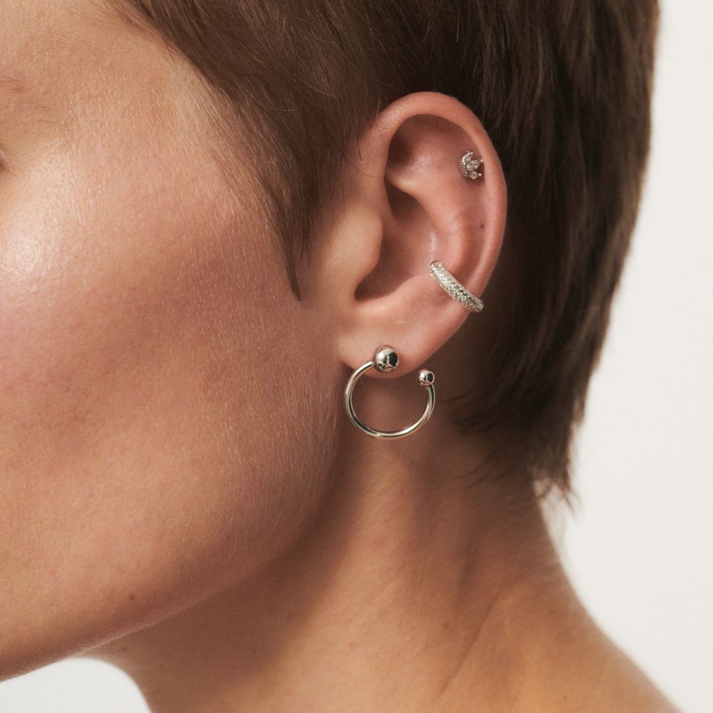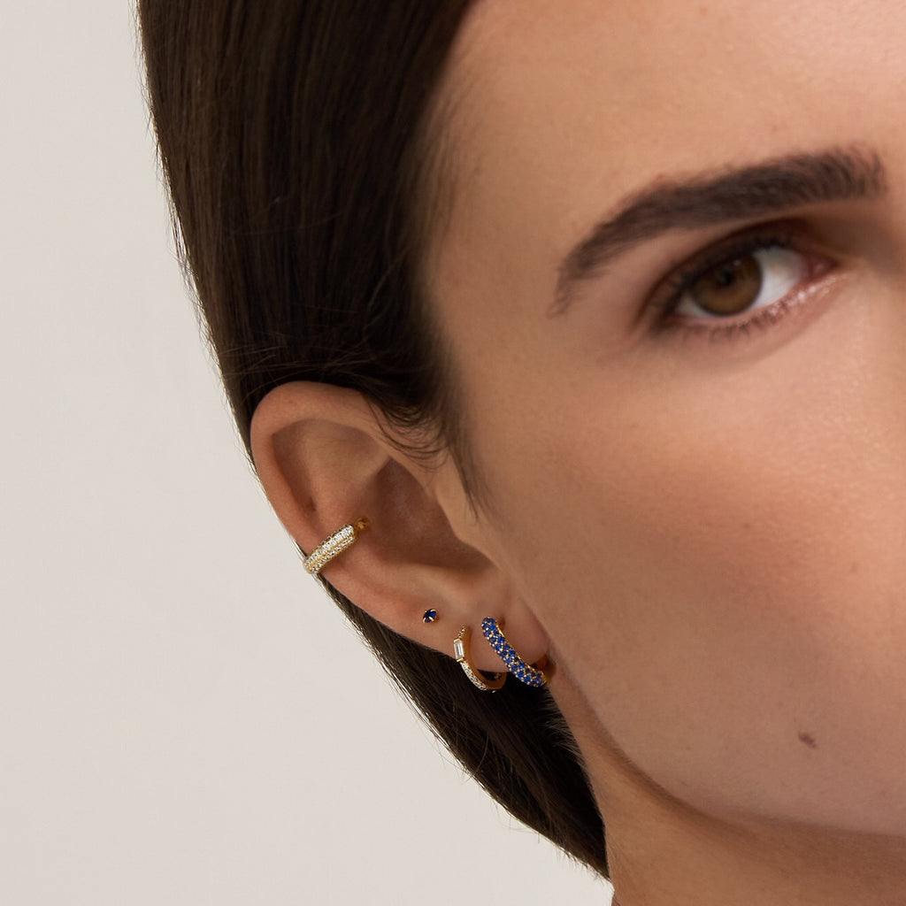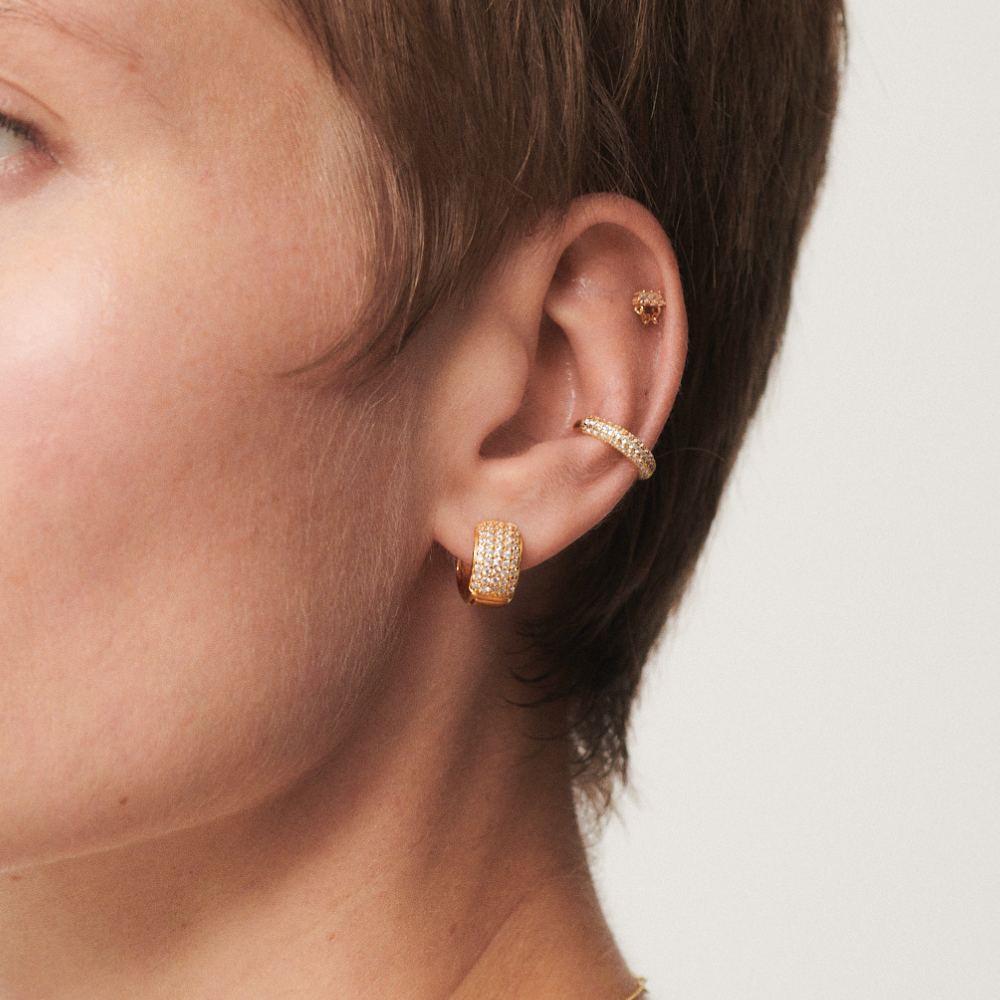 Astrid es un ear cuff lleno de luz y brillo. Sus infinitas zirconitas pavés lo convierten en una pieza clave par resaltar cualquier look. Atrévete a combinarlo con aros llamativos como los Electra para crear un look memorable.