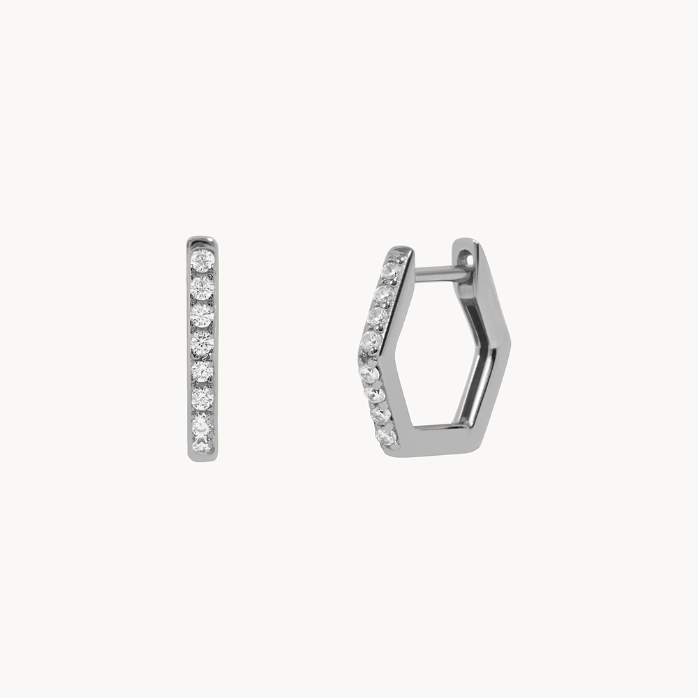 Hex son unos pendientes en forma hexagonal con numerosas circonitas en la parte frontal de la joya.