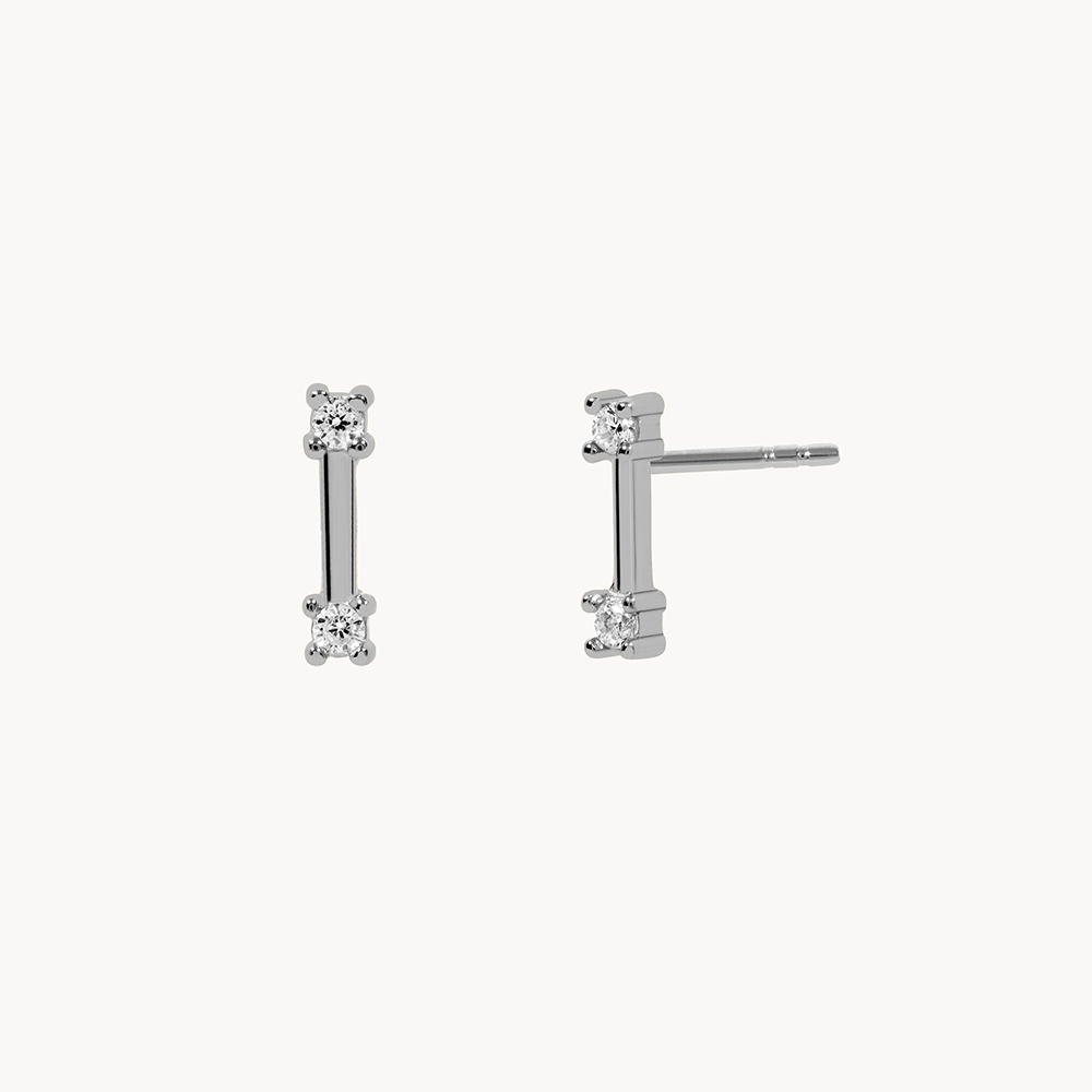 Shiny son unos pendientes pequeños en forma de barra con una circonita en la parte superior y otra en la inferior