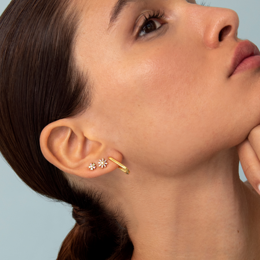Los pendientes Sundaisy formada por circonitas talla baguette en forma de flor son discretos y elegantes. Dale un toque de tendencia a tus looks, ya sabes que las flores están muy de moda .
