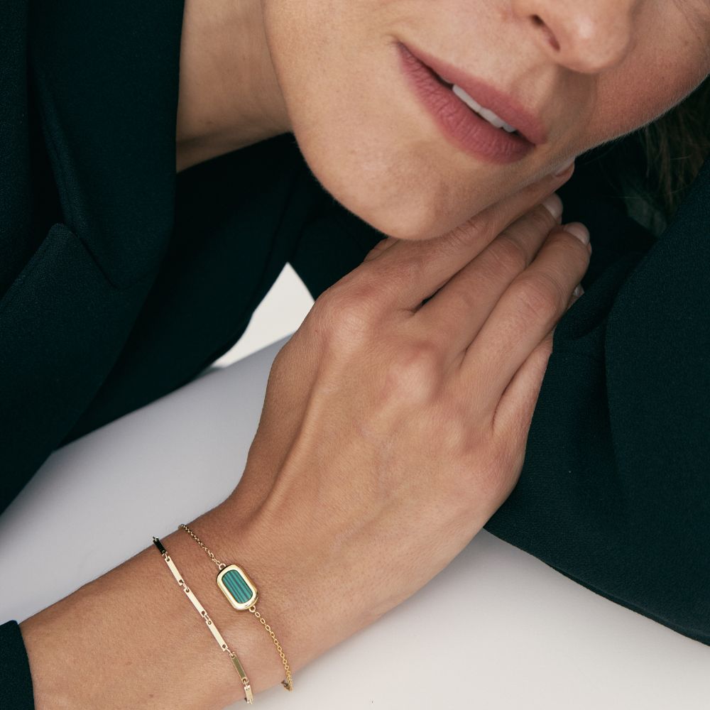 Nuestra pulsera Malaquita, como su mismo nombre indica, es una pulsera con una llamativa Malaquita en forma ovalada en el centro de la joya.