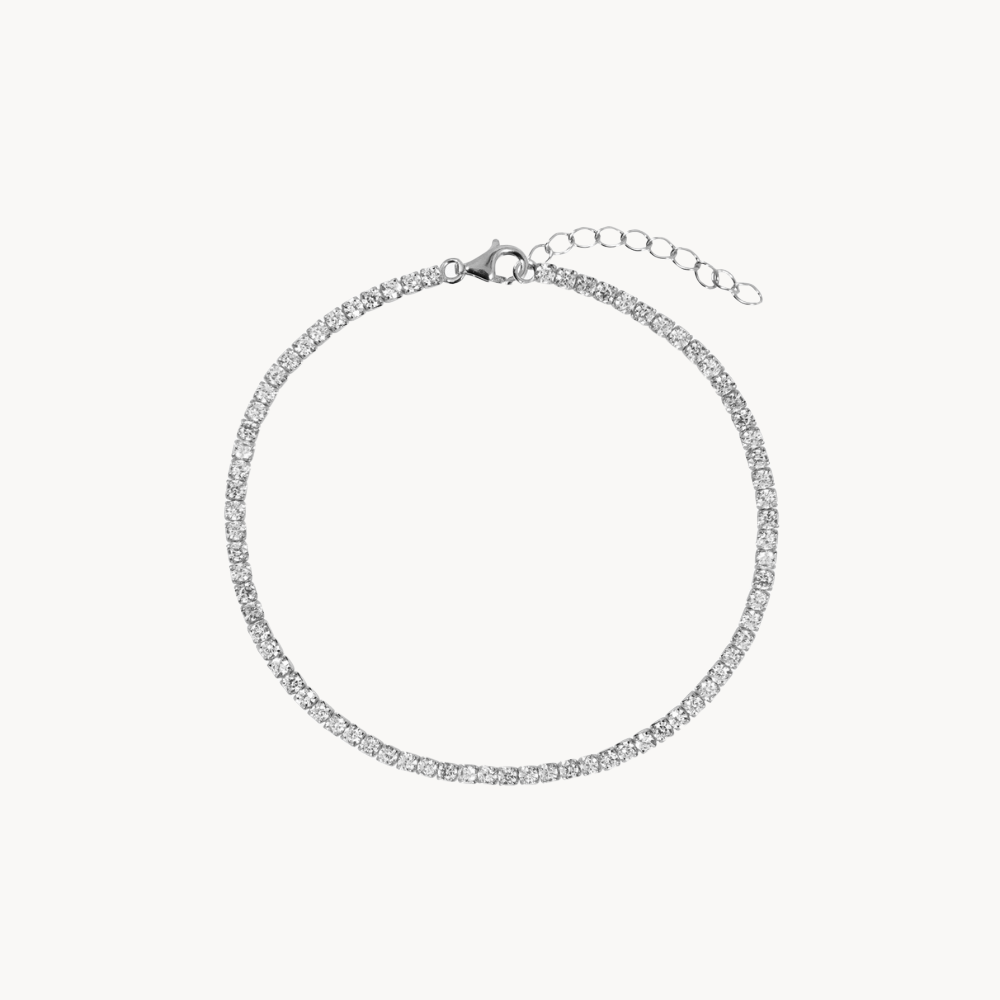 Tennis es una pulsera semi rígida formada por circonitas cúbicas en todo su diámetro.